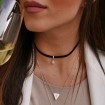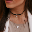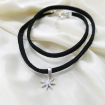 שילוב מדויק של מצפן משובץ זירקונים וחוט זמש שחור, הצ'וקר צמוד לצוואר